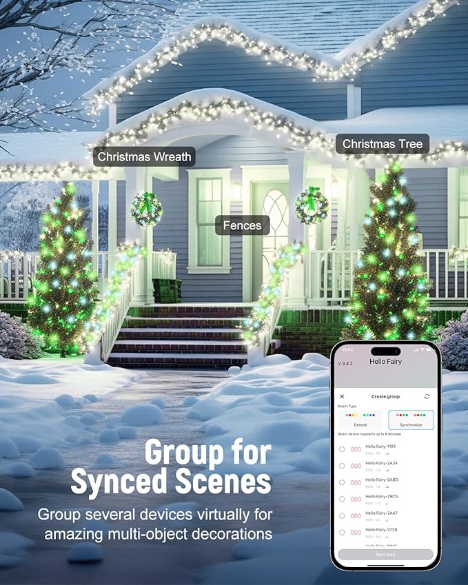 - Group Control for Easy Management: Connect multiple sets of led fairy lights to the app for group control. This allows you to manage all your christmas lights indoor at once, making it easier to create a cohesive look throughout your space