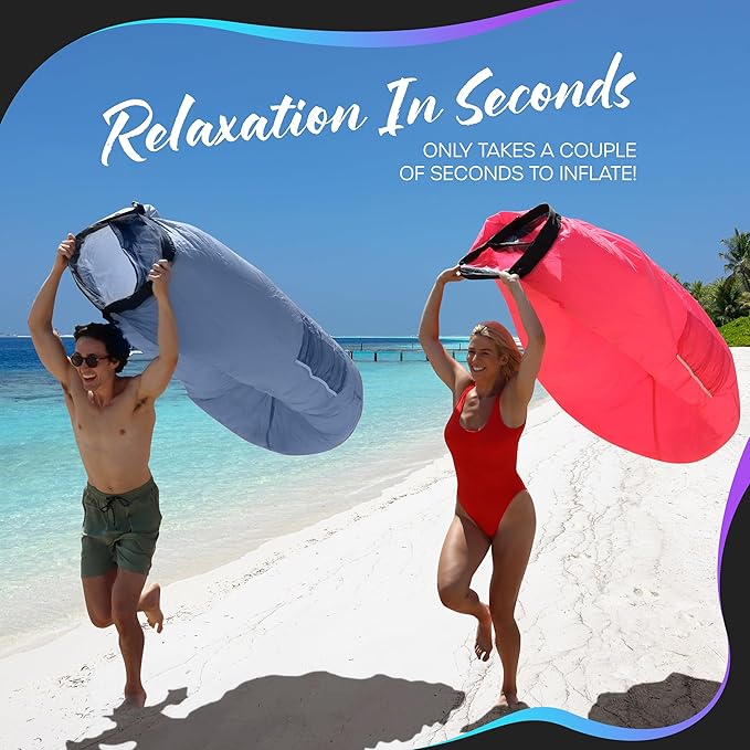 - Air Couch Inflatable For On-The-Go: With our inflatable lounge chair , pack light & relax anytime, anywhere! Use our blow up couch for camping , comfort at the beach or under the stars, a backyard barbecue, relaxing by the pool, an outdoor adventure, a pet bed, & more! From music festivals to firework shows & picnics in the park, you'll have an adaptable inflatable couch for adults & kids alike. Take convenience with you wherever you go with the Nevlers Periwinkle Blue Air Chair Inflatable !