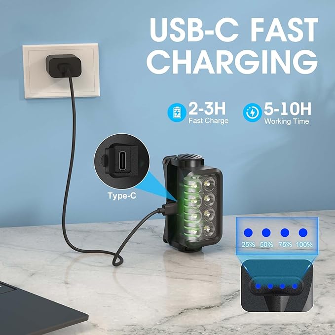 - Super Bright and Fast Charging: The headlamp flashlight camping essentials is equipped with class-leading LED chips and 8 powerful LED bulbs, delivering a maximum brightness of 2500 lumens—effortlessly lighting up your entire campsite, trail, or work area. It features a 2000mAh built-in rechargeable battery that's compatible with standard rechargeable batteries, allowing you to use and charge the headlamp simultaneously, so there's no need to wait for a full charge or worry about battery replacements. The battery indicator lights keep you informed of the power status, and once fully charged, the headlamp rechargeable provides up to 5-10 hours of continuous illumination