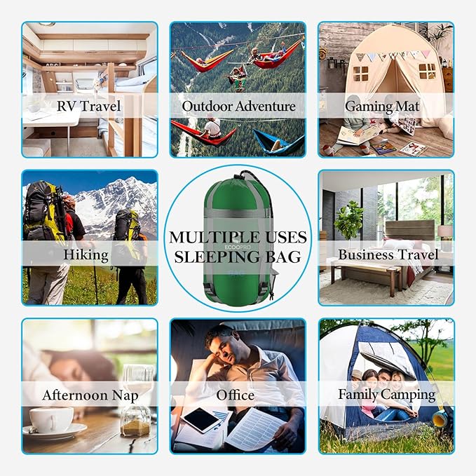 ECOOPRO Warm Weather Sleeping Bag - Portable, Waterproof, Compact Lightweight, Comfort with Compression Sack - Great for Outdoor Camping, Backpacking & Hiking-83 L x 30" W Fits Adults