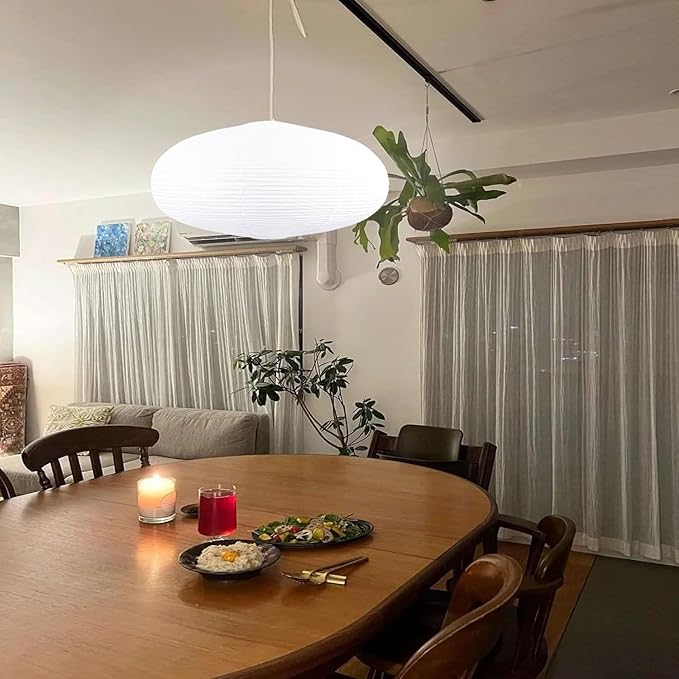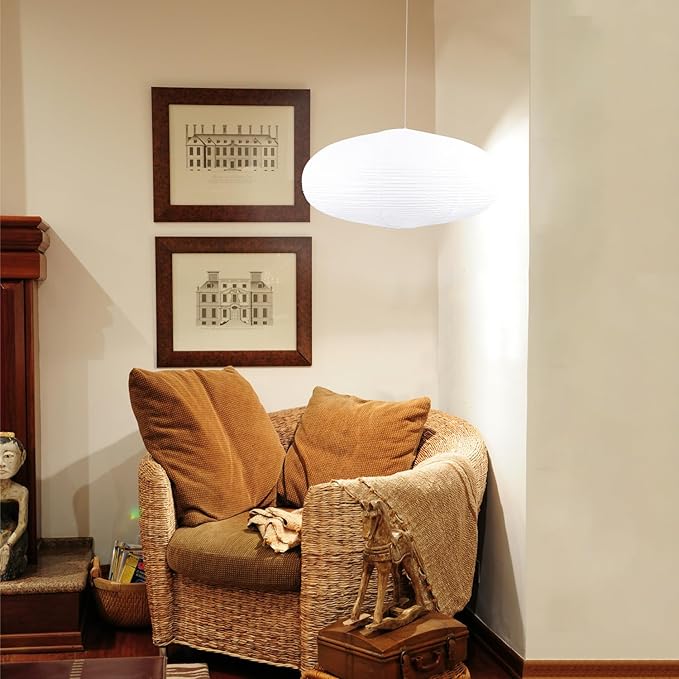 - [Showing Individuality]- Our handmade rice paper adds a soft natural texture that sets us apart. The paper shade lamp measures 22inches in diameter, 10.23inches high, top opening 5.31inches, bottom opening 3.74inches. Large, decorative, and easily noticeable, it adds a beautiful landscape to your home and makes your home more cozy and fragrant