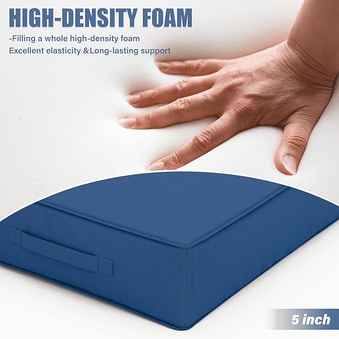 Patio Chair Cushions 24 X 24 X 5 Inch Waterproof Outdoor Seat Cushions for Patio Furniture, Outdoor Sofa Couch Pads with Ties & Handle, Set of 2, Blue
