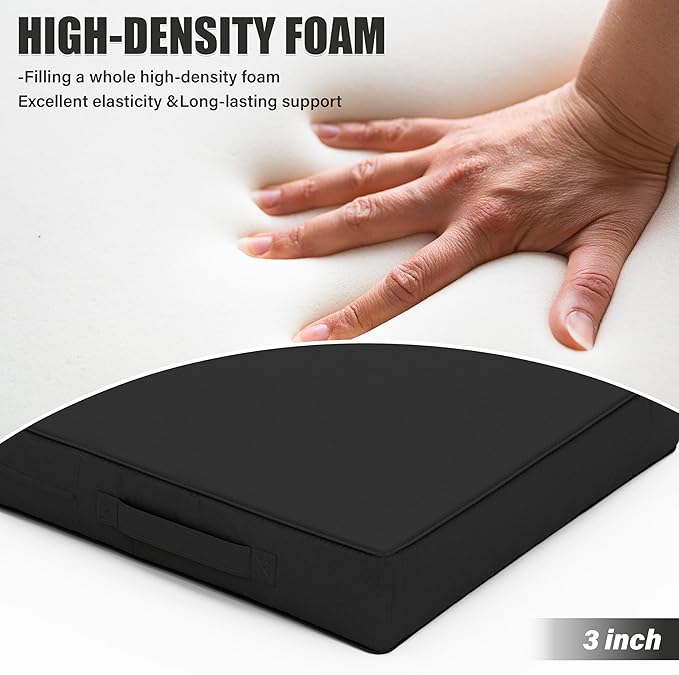 - π UPGRADED SUPPORT - Tounosnt's patio chair cushion is a full 3 inches thick, filled with premium 30D high resilience foam that is super comfortable and soft, with beyond-color resilient support and long-lasting recovery to give you the ultimate in comfort. When you use a seat, it is hard and at the same time, it can cause discomfort. While you use our outdoor chair cushion, it supports your hips and reduces the pressure points on your lower body, Enjoy long hours of relaxation.