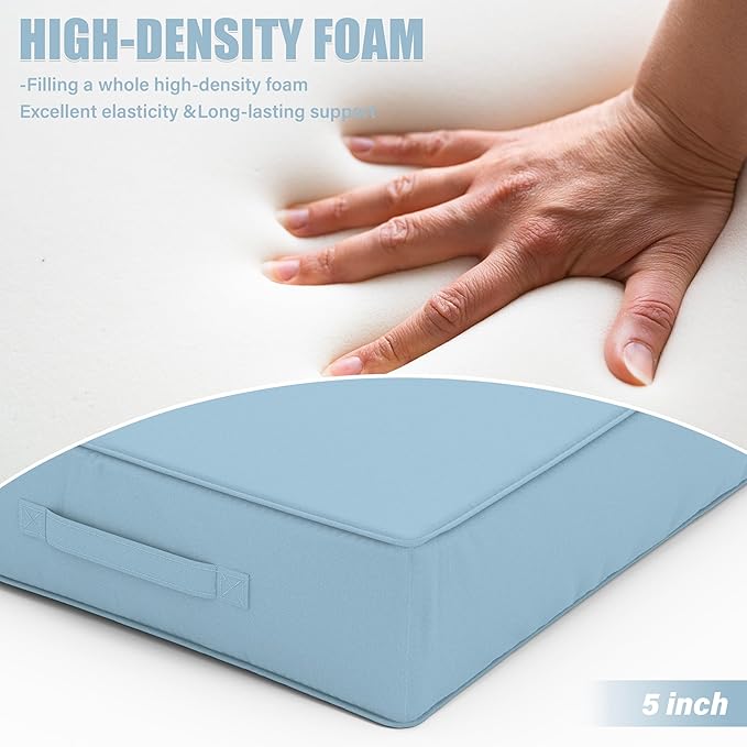 Patio Chair Cushions 24 X 24 X 5 Inch Waterproof Outdoor Seat Cushions for Patio Furniture, Outdoor Sofa Couch Pads with Ties & Handle, Set of 2, Light Blue