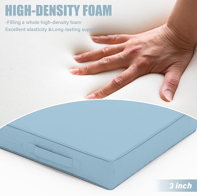 Patio Chair Cushions 17 X 16 X 3 Inch Waterproof Outdoor Seat Cushions for Patio Furniture, Outdoor Sofa Couch Pads with Ties & Handle, Set of 2, Light Blue