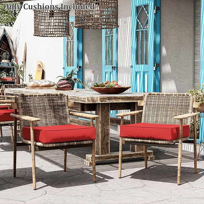 Patio Chair Cushions 24 X 24 X 5 Inch Waterproof Outdoor Seat Cushions for Patio Furniture, Outdoor Sofa Couch Pads with Ties & Handle, Set of 2, Red