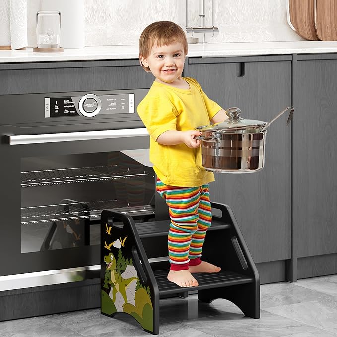 - Multifunctional Use: This two-step stool is not just limited to the bathroom and kitchen, it can also be useful in the bedroom, living room and more; Kids can use it to get in and out of bed, or to reach items on the kitchen counter, or even as a small stool for them to play or read; Its versatility allows kids to be helped in different scenarios, making it a handy assistant in their daily lives