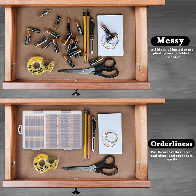 - A transparent lid design makes it easier to identify which batteries you have in stock, which you need to replenish, and available.