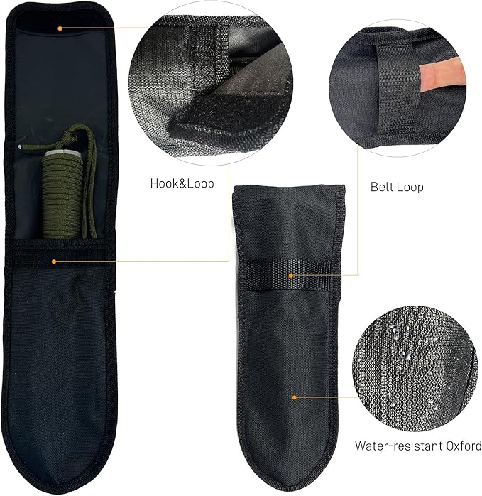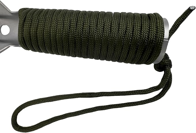 - EASY TO USE: The handle of this camping shovel is wrapped with a 2.5m/8ft paracord survival rope, which enhance comfort and a solid grip. The rope can be unfastened for unexpected emergency use.