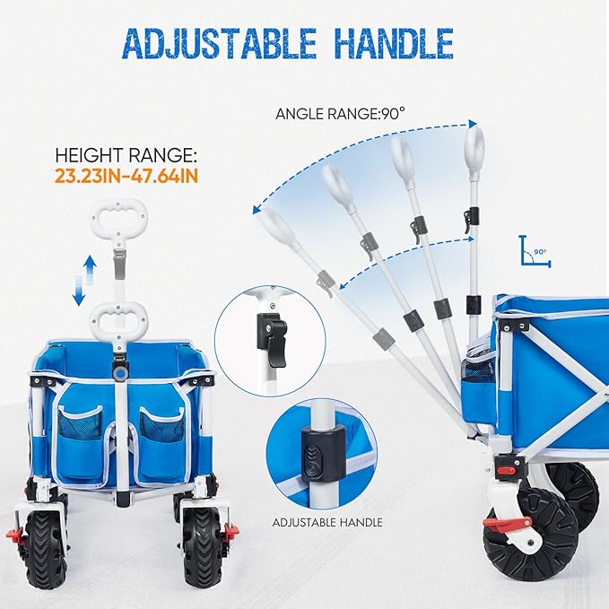 - 【Adjustable Handle & Convenient Storage Features】The handle can adjusts to your preferred length for comfortable pulling, while the built-in cup holders and large side pockets keep your essentials within reach. Perfect for staying organized and hydrated during outdoor activities.