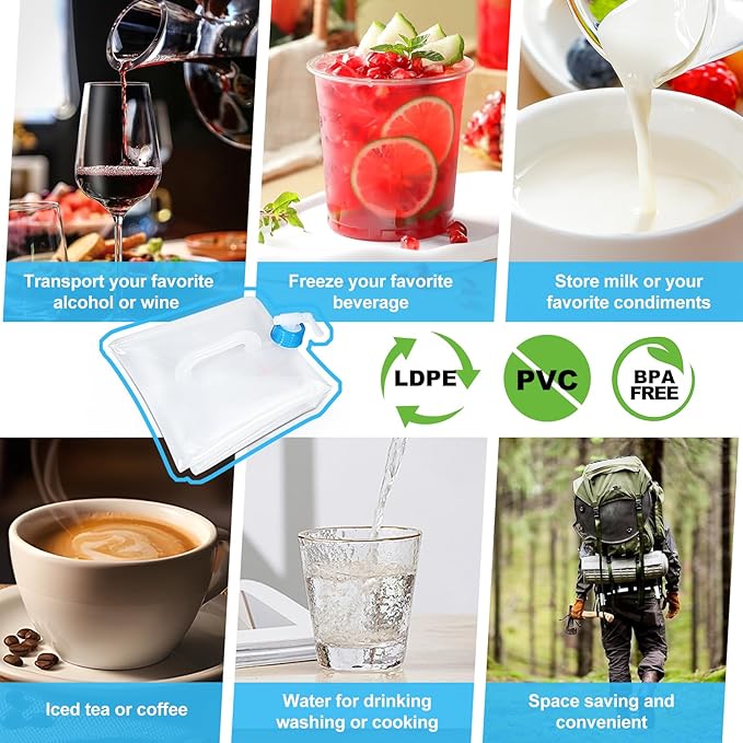 - Excellent Quality:The collapsible water container is made from LDPE material imported from Germany, ensuring it’s safe for water storage. It’s perfect for storing drinking water, as it contains no plastic smell and is both transparent and environmentally friendly. This durable material offers the highest quality, making it a great choice for long-term water storage needs, including in a 4 gallon water jug for larger quantities of water