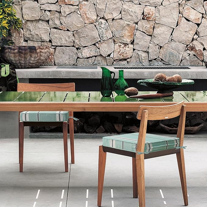 Square Corner Seat Cushions, 19" x 19" x 3", Set of 4, Indoor Outdoor Water Repellent Universal Chair Pads with Ties for Patio Furniture, Garden Deck Dining Chairs, Aqua Stripe