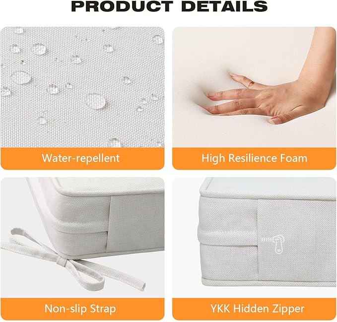 - 【Water Repellent and Removable Cover】 Made of eco-friendly, sturdy polyester fabric with a water repellent coating, the cushion cover is UV-protected and fade-resistant, providing you with a comfortable outdoor experience. The removable cover features a covered YKK zipper for easy cleaning and replacement.