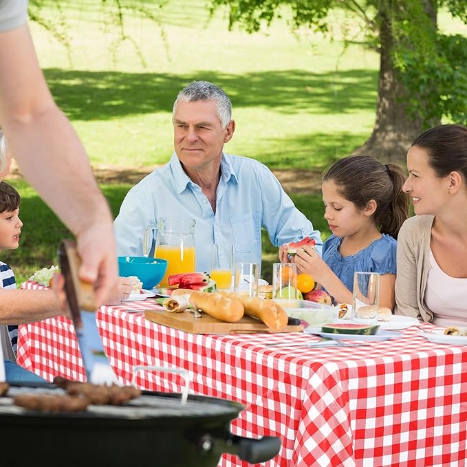 - Classic and Elegant Design: The red checkered tablecloth showcases a timeless color scheme that complements your home decor. Its classic pattern seamlessly integrates with your kitchen or dining area, enhancing visual appeal. The tablecloth’s aesthetic versatility makes it a charming addition to any event