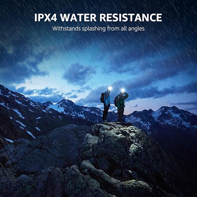 - Water Resistant and Shockproof, Built to Last - This durable headlamp is protected against splashing or spraying water from any angle, and can withstand rain, cold, heat, and even drops on the ground. You no longer need to worry about using it for any outdoor activities.