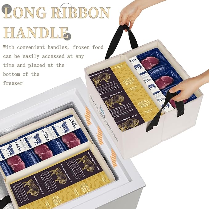 - Multiple Uses: This foldable deep freezer organizer bins is not only used for storing frozen food in the freezer, but can also be used to store other items in the kitchen, bedroom, pantry, living room, etc. It is a perfect solution for home storage.