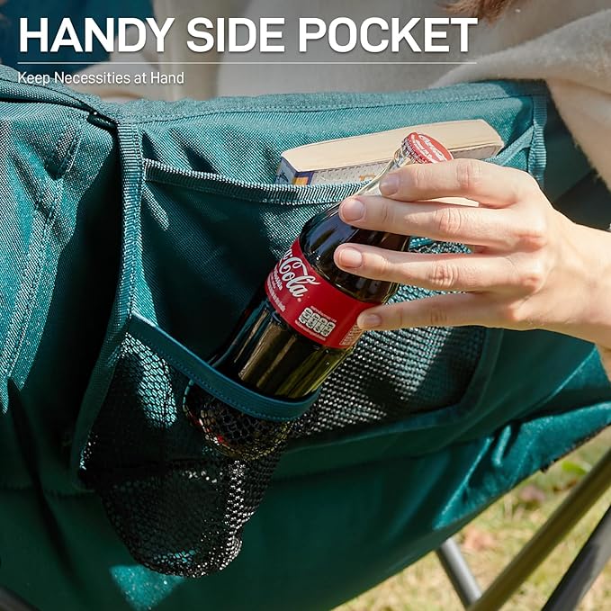 - 【Side pocket】The EVER ADVANCED 2 person folding lawn chair is equipped with a side pocket to keep your phone, books or other small necessities within reach. Bring more convenience to your leisure camping time!