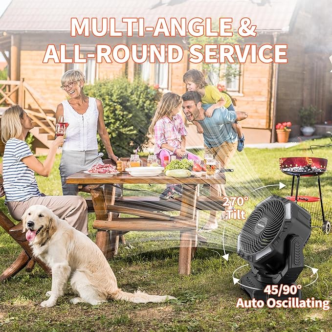 - Portable & Practical: With the automatic oscillation of 45/90° angle, the fan head can also rotate 270° up and down, easily adjusting the fan to the best blowing angle; an invisible handle on the fan head and a 360° rotating hook at the bottom, which can switch the wind direction when hanging the fan