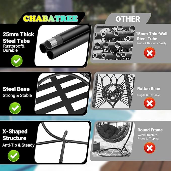 - 【Easy to Assemble】:This patio egg chair comes with all necessary hardware and detailed instructions, making assembly simple and safe. Additionally, the waterproof cushion cover is easy to clean and removable.