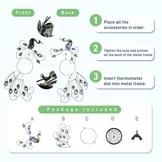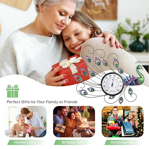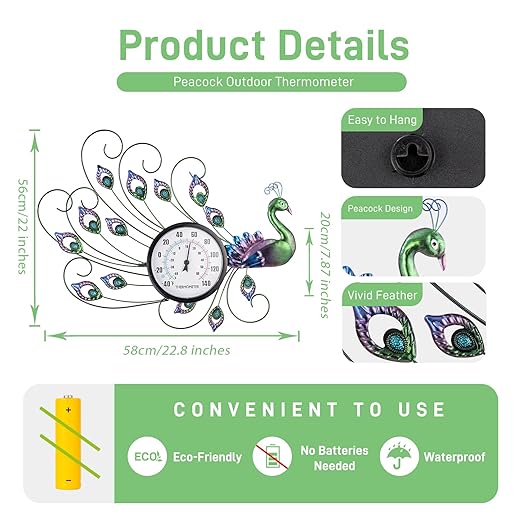 - Exquisite Peacock Shape: It is a handmade exquisite peacock outdoor thermometer that shows the craftsman's superb craftsmanship and pursuit of art. Equipped with a 7.8-inch thermometer, hanging it on the wall can not only monitor the temperature but also make the room decoration more gorgeous