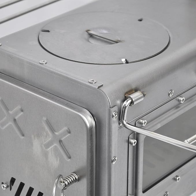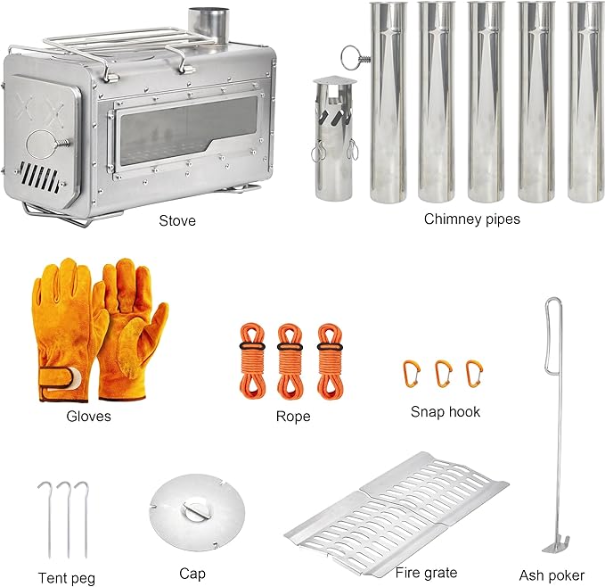 - Sturdy And Durable: The outdoor Camping tent wood stove is composed of stainless-steel construction, ideal in harsh outdoor environments. The top heat plate cannot deform after heating for long-lasting uses.