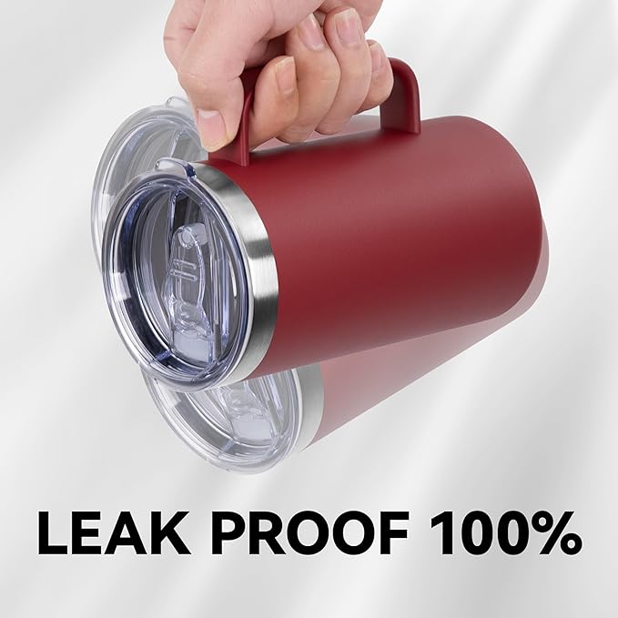 DOMICARE 24oz Mug with Handle and Lid, Stainless Steel Coffee Mug, Reusable Insulated Cup, Travel Mug with Handle, Double Wall Vacuum Coffee Tumbler for Men and Women, Dark Red, Pack 1