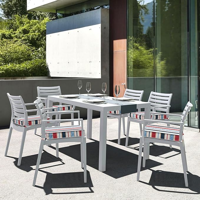 LVTXIII Patio Chair Cushions 19"x19"x3", Water-Repellent Outdoor Seat Cushions for Patio Furniture, Square Chair Pads with Ties for Home Garden Decoration, Set of 2, Stripe Red Blue
