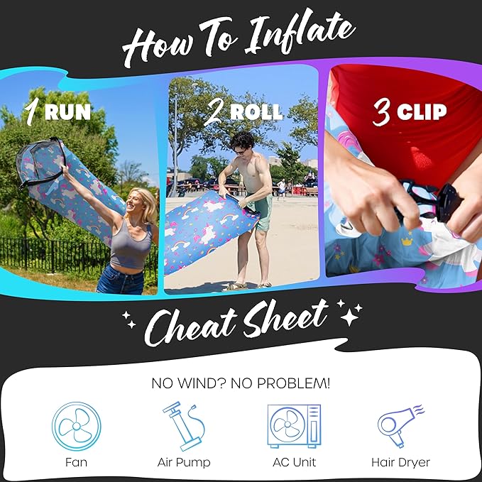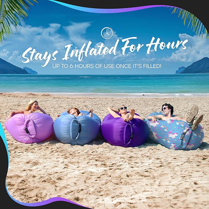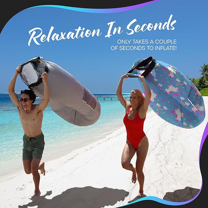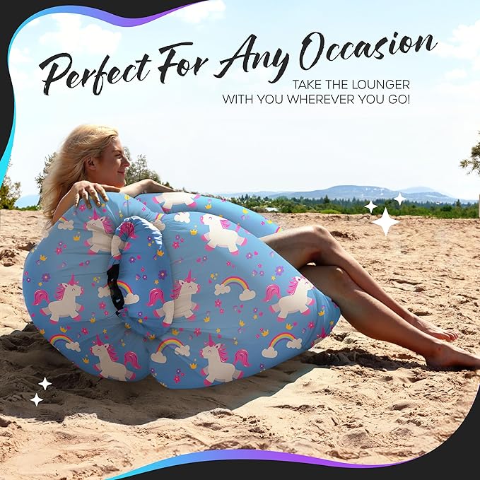 - INFLATABLE OUTDOOR FURNITURE FOR A FUN VIBE: Spark laughter & excitement at any gathering with this blow up lounge chair , sure to catch everyone’s attention & earn compliments with its cute unicorn design. Great as a gift for outdoor enthusiasts, the air hammock beach bed is a must-have addition to your adventure gear. Bring comfort, style & portability together with the adorable Nevlers Outdoor Blow Up Furniture for adults & kids alike. The inflatable recliner livens up every lazy afternoon!