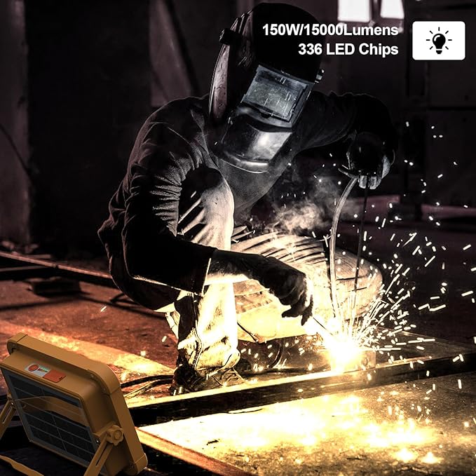 Portable LED Work Solar Light 100W 16500mAh 10000 LM with Stepless Brightness Job Site Battery Rechargeable LED Floor Light for Emergency Worklight for Hurricane (Orange(Remote))