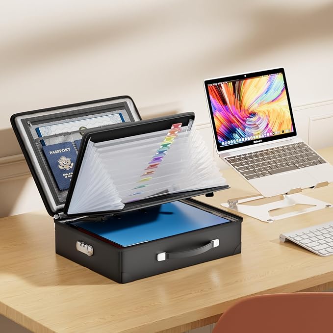 - Safety Combination Lock Design: Our fireproof document box is equipped with a password lock that provides protection for your documents, including contracts, cards, certificates, meeting materials, laptops, and passports. It blends well with any office, court or home setup and would be perfect for an officer or construction supervisor working in and out of their vehicle