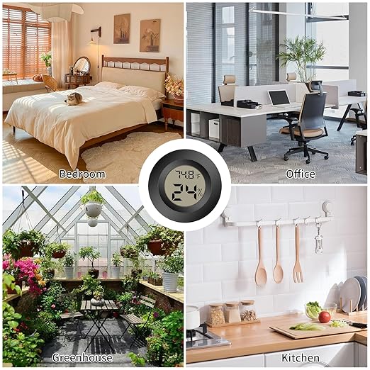- 【Wide Applications】Temperature and humidity gauge can be used in home, office, greenhouse, garden, garage, wine cellar, guitar case, incubator, brooder, cellar, refrigerator, humidor, reptile tank, aquarium, fish tank, AMS desiccant holder system, 3D printer automated material tank, and anywhere else where temperature and humidity need to be monitored