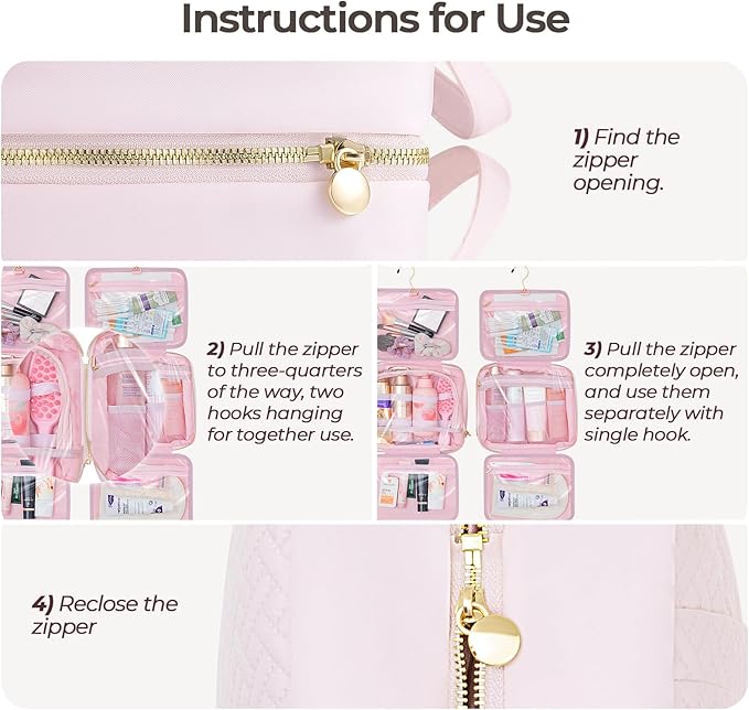 - 【Versatile & Great Gift Idea】The front pocket of the hanging toiletry bag for women provides quick-access storage, and the comfortable handle of the travel bathroom bag makes it easy to carry. the subtle design allows for a wide range of uses, You can even hang the travel toiletry cosmetic bag at home to store less frequently used items and save space. It also makes a fantastic gift for family and friends on Christmas, Mother’s Day, Valentine’s Day, birthdays, and more.