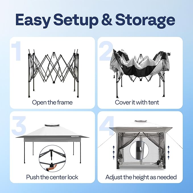 - VERSATILE USE FOR OUTDOOR: Ideal for a wide range of outdoor activities, including picnics, camping, backyard BBQs, parties, and market stalls; The water-resistant and sun-resistant fabric provides reliable protection from rain and harmful UV rays; Perfect for any occasion, creating a cozy, shaded, and welcoming outdoor environment for family and friends