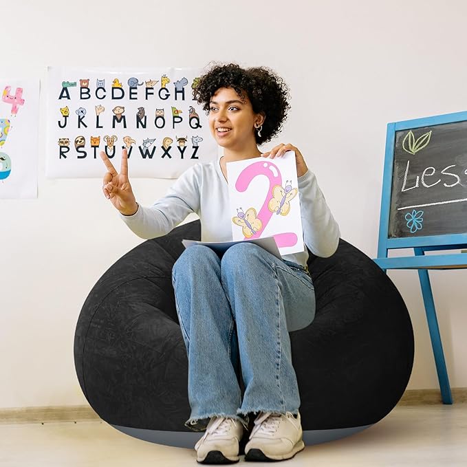 - Versatile Uses: you will get 2 inflatable bean bag chairs in 1 color, namely black, suitable for most people; These bean bag chairs are nice for leisure, nap, sleeping, reading, movie night, backyard family gatherings, or any kind of leisure activities; Provide this bean bag for bedroom convenience to your family and bring a good mood to everyone