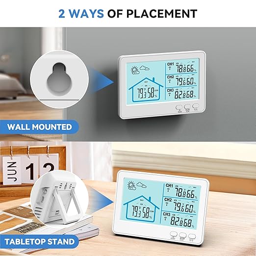 - 【Displays 3 sensors data with a transmission range of 328ft/100m】 - Uses advanced patented wireless technology to provide more powerful and stable data transmission. The wireless temperature and humidity monitor updates and transmits temperature and humidity data every 30 seconds with a transmission radius of up to 328 feet, helping you monitor all the locations you care about most.