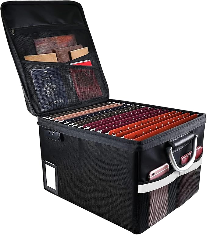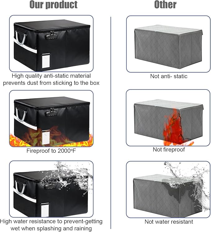- Fireproof and water-resistant safe: The exterior material of Fireproof File Box is made of upgraded anti-static silicone coated fiberglass, which can withstand temperature up to 2000℉. Fireproof Document Box is not only fireproof but also highly water-resistant, so you don't have to worry about your important documents getting wet by rain.(Does not include folders)