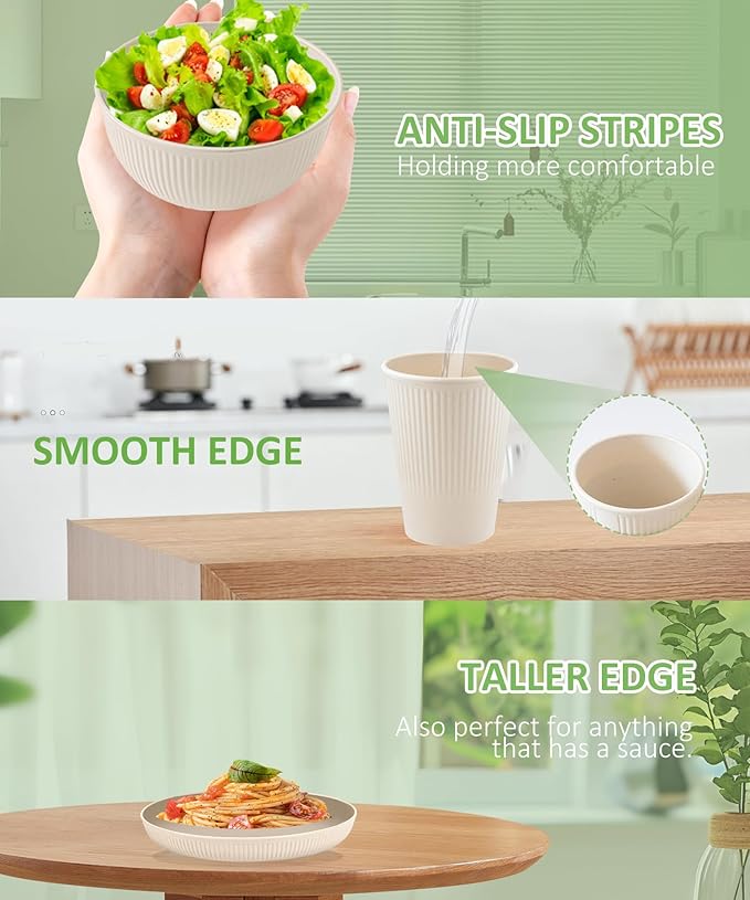 - Druable & Dishwasher Safe & Stackable: A good replacement for glass, ceramic dish set, the wheat straw dinnerware set is unbreakable and druable, no more worrying about broken dishes. This dinnerware set is also dishwasher safe, which makes them convenient for everyday use. The stackable design of dish set saves space in your kitchen cabinets