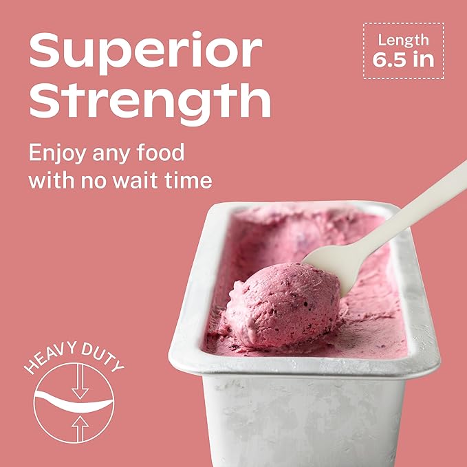 CORAL Ivory White 100% Compostable Spoons - 120 Heavy Duty No Plastic Spoons (6.5 inch) - Break Resistant with Smooth Edges, Ocean Friendly Alternative to Plastic Utensils - Biodegradable & Disposable