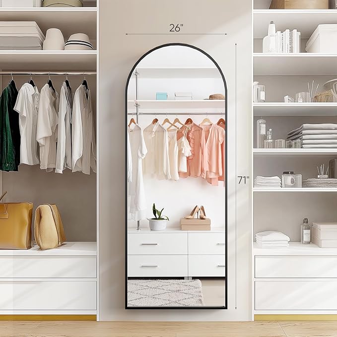 Arched Full Length Mirror, 71 x 26 inch Floor Mirror with Aluminum Alloy Thin Frame, Full Body Mirror for Wall Bedroom Dressing Home Decor, Black