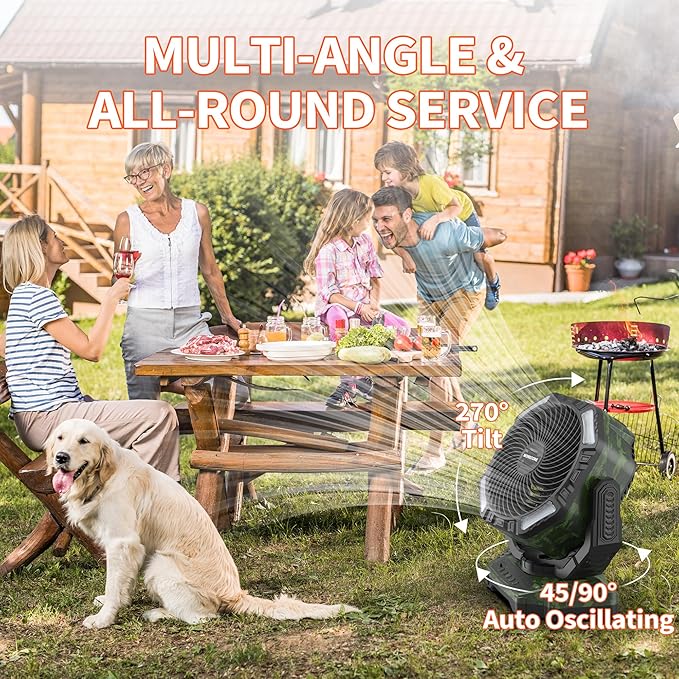 - Portable & Practical: With the automatic oscillation of 45/90° angle, the fan head can also rotate 270° up and down, easily adjusting the fan to the best blowing angle; an invisible handle on the fan head and a 360° rotating hook at the bottom, which can switch the wind direction when hanging the fan