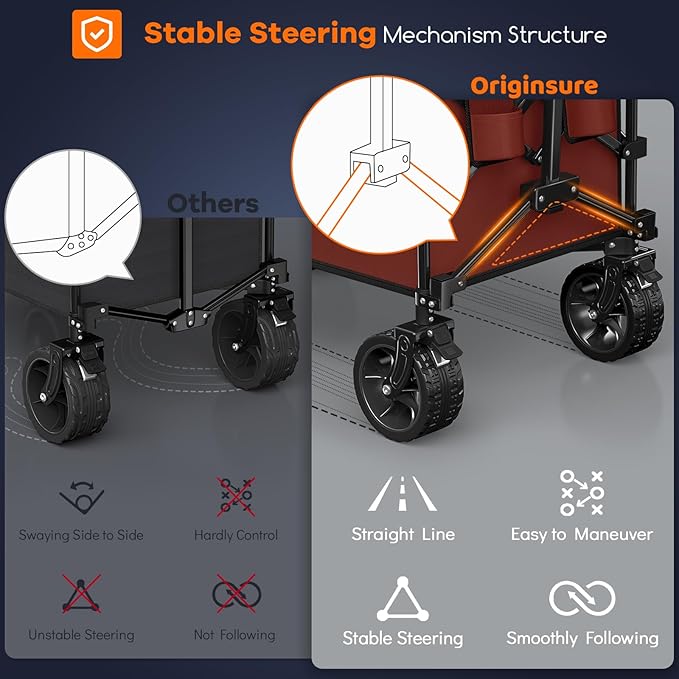- ใ๐ฃ๐ฎ๐๐ฒ๐ป๐๐ฒ๐ฑ ๐ฆ๐๐ฎ๐ฏ๐น๐ฒ ๐ฆ๐๐ฒ๐ฒ๐ฟ๐ถ๐ป๐ด ๐ ๐ฒ๐ฐ๐ต๐ฎ๐ป๐ถ๐๐บ & ๐๐ฑ๐ท๐๐๐๐ฎ๐ฏ๐น๐ฒ ๐ฅ๐ฒ๐ฏ๐ผ๐๐ป๐ฑ๐ฎ๐ฏ๐น๐ฒ ๐๐ฎ๐ป๐ฑ๐น๐ฒ ๐๐ผ๐น๐ฑ๐ถ๐ป๐ด ๐ช๐ฎ๐ด๐ผ๐ป ๐๐ฎ๐ฟ๐ใThis foldable cart features an stable innovative steering mechanism structure, Restoring the swaying 3-point handle-frame connection, resolving the problems of swaying side to side, loss of control, and steering difficulties of similar carts, significantly enhanced stability and maneuverability. A rebound adjustable handle with the lock can be freely adjusted in length, suitable for all types of people.