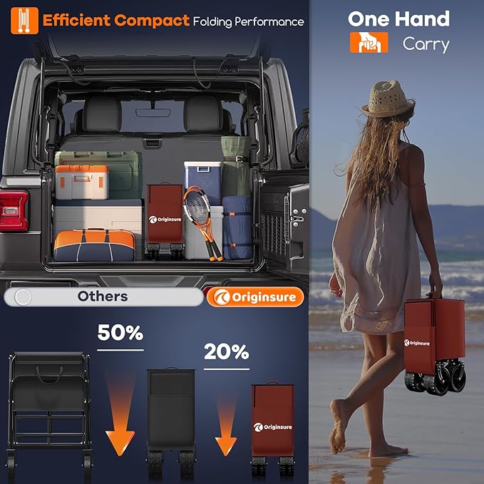 - ใ๐ฃ๐ฟ๐ผ๐ฑ๐๐ฐ๐ ๐ฆ๐ถ๐๐ฒ & ๐๐ฐ๐ฐ๐ฒ๐๐๐ผ๐ฟ๐ถ๐ฒ๐ใOriginsure folding carts unfolded size: 37.40"x 24.21"x 24.00"(42.52"), folded size๏ผ9.06"x 12.20"x 24.00", handle height from Ground: 42.52", with 1 Side Pocket, 2 Mesh Cup holders, 1 Storage Cover, and 1 Strap. Ready to use right out of the box, no assembly required.