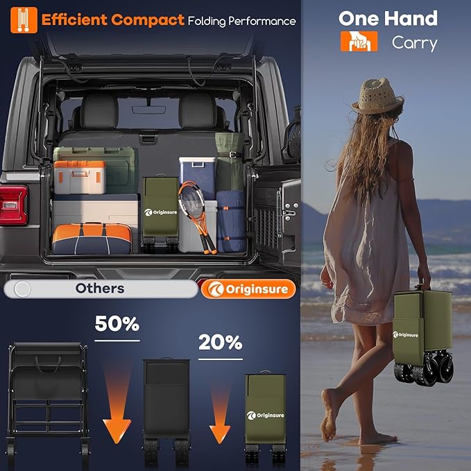 - ใ๐ญ๐ฌ.๐ฏ๐ฒ ๐ฐ๐ ๐ณ๐ ๐๐ฎ๐ฟ๐ด๐ฒ ๐๐ฎ๐ฝ๐ฎ๐ฐ๐ถ๐๐ ๐๐ถ๐๐ต ๐ฆ๐บ๐ฎ๐น๐น๐ฒ๐ฟ ๐๐ผ๐น๐ฑ๐ฒ๐ฑ ๐ฆ๐ถ๐๐ฒ ๐ฃ๐ผ๐ฟ๐๐ฎ๐ฏ๐น๐ฒ ๐๐ผ๐น๐น๐ฎ๐ฝ๐๐ถ๐ฏ๐น๐ฒ ๐๐ฒ๐ฎ๐ฐ๐ต ๐ช๐ฎ๐ด๐ผ๐ปใOriginsure foldable wagon cart, 48.43 "L x 24.02 "W x 24.41 "H large unfolding size, 10.36 cu ft/300L massive storage space, triple the capacity of similar wagons. Adopting an innovative folding design that maintains its height, the Capacity reduces to 1.36 cu ft when folded, only 1/3 of other carts. Compact and space-saving, it can be perfectly stored in the car trunk and room corners.