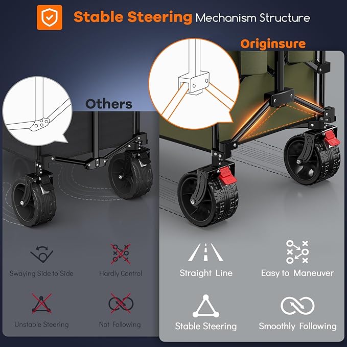 - ใ๐ฃ๐ฎ๐๐ฒ๐ป๐๐ฒ๐ฑ ๐ฆ๐๐ฎ๐ฏ๐น๐ฒ ๐ฆ๐๐ฒ๐ฒ๐ฟ๐ถ๐ป๐ด ๐ ๐ฒ๐ฐ๐ต๐ฎ๐ป๐ถ๐๐บ & ๐๐ฑ๐ท๐๐๐๐ฎ๐ฏ๐น๐ฒ ๐ฅ๐ฒ๐ฏ๐ผ๐๐ป๐ฑ๐ฎ๐ฏ๐น๐ฒ ๐๐ฎ๐ป๐ฑ๐น๐ฒ ๐๐ผ๐น๐ฑ๐ถ๐ป๐ด ๐ช๐ฎ๐ด๐ผ๐ป ๐๐ฎ๐ฟ๐ใThis foldable cart features an stable innovative steering mechanism structure, Restoring the swaying 3-point handle-frame connection, resolving the problems of swaying side to side, loss of control, and steering difficulties of similar carts, significantly enhanced stability and maneuverability. A rebound adjustable handle with the lock can be freely adjusted in length, suitable for all types of people.