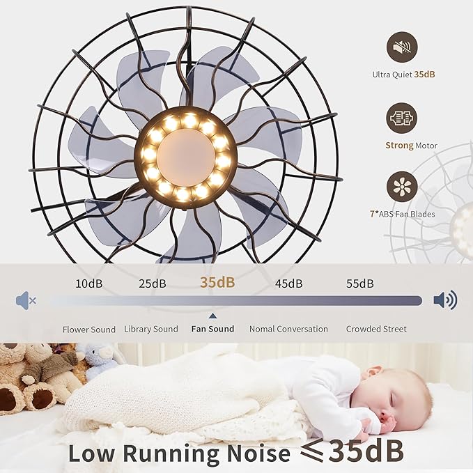 - 【Memory Function】Turn on the light and wait 30 seconds, all settings will be memorized. When next time turned on, the color and brightness last turned off will remain unchanged.and Reversible mode; 6 fan speed levels; Nightlight mode; 1/2H Timing function