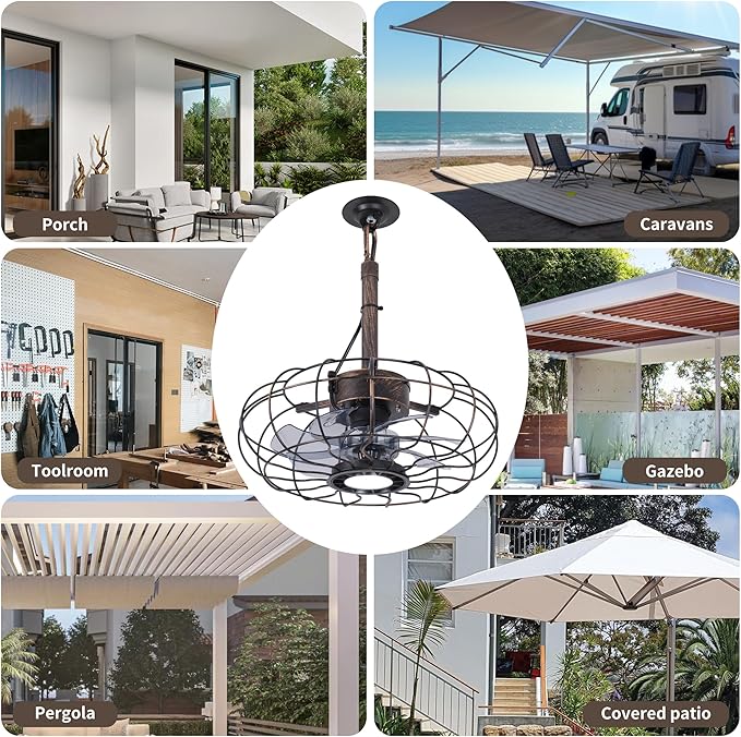 - 【2 in 1 Indoor & Outdoor Ceiling Fan】Added Outdoor waterproof IP65, So Our Ceiling Fan are different from other iron cage fan lights. Be waterproof and High temperature resistance, ideal for outdoor use such as gazebos or covered patios. The ceiling fans is made of high quality material and sturdy construction, it is specially made to withstand extreme weather conditions. It is also suitable for indoor use