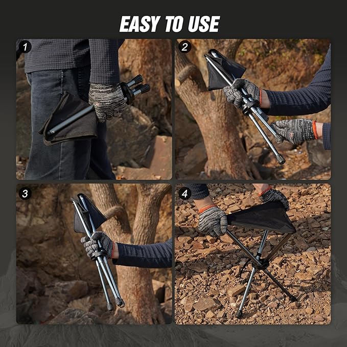 REDCAMP Ultralight Camping Stool with Retractable Legs, Portable 3 Legged Tripod Camping Stools for Adults Fishing Backpacking Hunting, Black