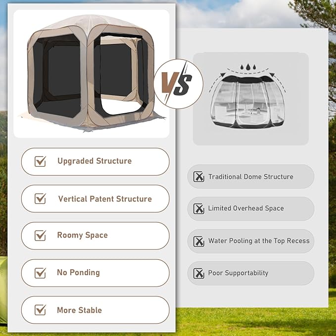 - ?�Effortless Setup & Portable Design?? This pop-up screen tent is designed for easy setup and storage. Ideal for 4-6 people, it pops up in seconds and comes with a convenient carrying bag, making it perfect for camping, picnics, or backyard use.