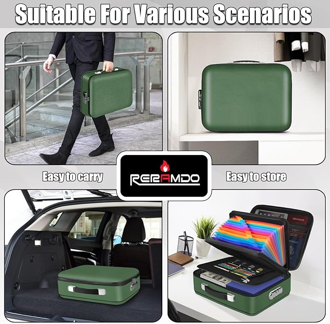 - 【UL-94 VTM-0 certified fireproof box】: RERAMDO fireproof file box surface is made of non-itchy silicone coating and thick flame-retardant fiberglass material, which is fireproof and heat-resistant, and has passed SGS (UL-94 VTM-0) testing and certification. The surface water Resistant material effectively prevents liquid penetration and protects the safety of important documents.