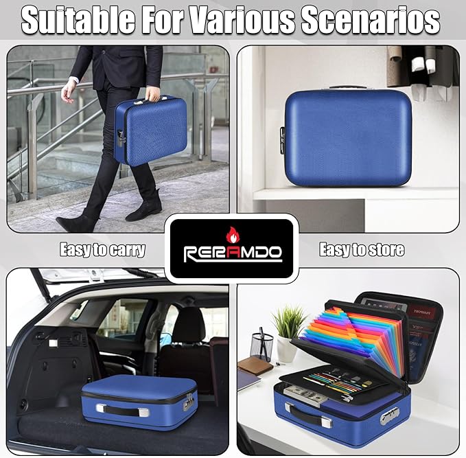 - 【Multiple safety details design】: Fireproof Document Box adopts mechanical password lock design, which can provide you with a safe storage solution. The zipper adopts water Resistant design to protect important documents to the greatest extent. The upgraded portable metal handle is lighter and more beautiful, making it easier to carry in an emergency, It also has two anti-skid pads at the bottom to improve stability and facilitate storage.Suitable for daily life, home office travel, and also very suitable as a gift for family and friends.